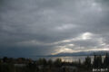 Hoy, después de almorzar, me entero que en Villa La Angostura sintieron un temblor. Fui al USGS y figuraba una lista de temblores que no tardé en mapear. Con eso me pregunté si no habría erupción del volcán Puyehue. Lo más curioso es que quince minutos después salí de mi casa y me encontré con un panorama interesante: hacia el Oeste un muro violeta se acercaba rápidamente a la ciudad. Ahí dije «sí, está en erupción» y comenté algunas recomendaciones mientras íbamos al centro a cumplir con las actividades usuales del sábado.