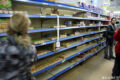 Sobre la actitud de la gente en los supermercados, hoy pude ver con mis ojos lo que me fueron contando de otros supermercados en el resto de la ciudad. La gente vació las góndolas de agua, pero dejaban la soda y las gaseosas, como si no fueran también líquidos para hidratarse. También se llevaron las galletas de agua (Criollitas, Desayuno, Express) pero dejaron el resto de las galletas. Otra góndola vacía era del aceite, que tiene sentido porque sirve para hacer mucho. Se llevaron el atun en lata, razonable, pero ninguna otra conserva. Y en cuanto a las pilas no quedaba casi ninguna, apenas algunas AAA y las recargables, que en el caso de las Duracell confundían mucho a la gente.