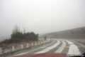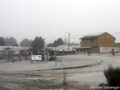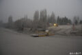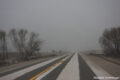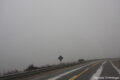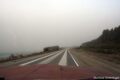 Pero para cuando salimos, un par de horas más tarde que las primeras fotos, ya estaba algo más nublado. Resultó que la pluma se dirigió al sur y nosotros fuimos directamente para el norte, metiéndonos de lleno en la nube. Pero no fue para nada grave. La ruta se puede transitar y con una velocidad entre 60 y 80 Km/h el parabrisas se mantenía limpio con el solo viento del movimiento. Interesante, pero poco recomendable.