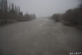 El día permitió poder distinguir la piedra pómez flotando en el lago. Esa línea celeste que corre por el agua (en azul) es la piedra pómez caída en los lagos Espejo y Correntoso y en los brazos Rincón y ültima Esperanza del Nahuel Huapi. Es transportada por el viento en una larga lengua que en Bariloche vemos llegando como islotes hasta que llegan a la costa. Después bordean la costa y se termina yendo por el río Limay. Ante este panorama decidimos ir hasta Villa Llanquin, para ver cómo estaba ese lugar, sabiendo que iba a estar aun cubierto de fino polvo caído por la última semana: