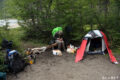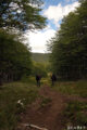 El último tramo de la travesía va desde la laguna Ilon hasta Pampa Linda, por un sendero que recorre una hora bordeando y atravesando mallines y otra hora en prácticamente una caída libre similar al descenso del Bailey Willis al arroyo La Chata. El último punto es vadear el río Alerce que, dependiendo de la época y el clima, puede ser un torrente bastante profundo y peligroso o, como en esta ocasión, una corriente tranquila que no llegaba a la rodilla.