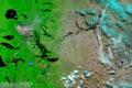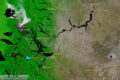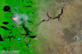 Venimos tan acostumbrados al grisado que cuando se limpia el aire todo parece tener más color. La tormenta también removió piedra pómez que fue cruzando el lago y hoy, con la calma, quedó sin rumbo frente a la costa.