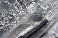 Las nacientes del Ventisquero Negro, donde se ven los estratos de antiguas erupciones (1) y la roca granítica previa al volcán, al descubierto (2).