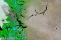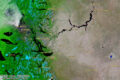 Como se puede ver alrededor de cada volcán hay una mancha de cenizas, negra para el Hudson, gris para el Chaitén y para el Puyehue. Este último sigue activo y aun molestando. El area gris es mayor por esta causa. Hace tres años alrededor del Chaitén todo era gris y lo mismo para el Hudson hace 20 años. Lo interesante de esta imagen es que tenemos tres volcanes activos en Patagonia al mismo tiempo, algo que no era muy común hasta ahora.