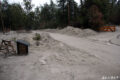 Claro que por un lado emigró el 30% de la población y la cantidad de arena caída triplica lo que cayó en Bariloche, pero el pueblo parece catatónico. Haciendo un poco de memoria, la otra vez a los únicos que vi paleando arena fue al Ejército. Se que no tienen dónde apilar la arena que juntan. El pueblo no tiene canteras y están rodeados por los bosques y lagos del Parque Nacional Nahuel Huapi. Se aferraron a la idea de arrojar la arena al lago Nahuel Huapi, descartada de plano por todos los expertos consultados. El Parque les ofreció una enorme cantera unos 50 Km al este, sobre la ruta 231, pero parece que el gobierno de La Angostura no quiere desplazar tanto los camiones.