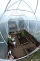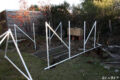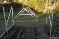 Como no tenía sentido cubrir el invernadero durante el invierno, pasó así desde Mayo hasta Septiembre. Mientras tanto pude observar y estudiar el comportamiento de la estructura los días de viento. Además estuve pensando la manera de sujetar el plástico que cubriría la estructura, ya que el método clásico es clavar varillas de madera sobre la estructura de madera y no lo podía aplicar con el PVC.
