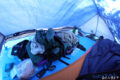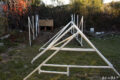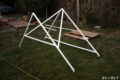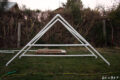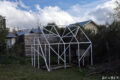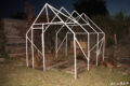 Si bien había diseñado la estructura con bastantes triángulos, la parte inferior tenía un bamboleo importante que anulé colocando un gran caño cruzado en el frente. En la cumbrera y los laterales puse caños a lo largo de la estructura.