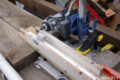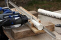 Las dos maneras de sujetar el plástico de polipropileno con los caños de PVC es hacer unas abrazaderas de los mismos caños. Cortando un tercio de la circunferencia y limando los bordes, es posible colocarlos alrededor de los caños y sujetan bien el plástico sin dañarlos. Con los restos se hacen tiras que sirven para atornillar a la estructura en las partes planas. Para cortar los caños improvisé una cortadora con el Dremel.