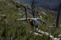 Pero el domingo pasado hicimos masa crítica con los amigos y subimos a un cerro poco conocido pero que sirve muy bien de entrenamiento. Parte desde el campamento Carilafquen, en lago Mascardi, y sube la primera mitad por un bosque que se quemó en Febrero de 1999. Esto implica un sendero que cambia año a año en la medida que los árboles muertos caen y bloquean el camino. Si bien no es una picada exigente, es recomendable ir con alguien que sepa bien a dónde hay que ir.