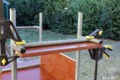 El carrito tiene espacio para un tubo de gas que no tengo. Como sueldo en el exterior uso alambre MIG sin gas o simplemente electrodo recubierto. Las ruedas son gigantes porque como pueden ver tiene que andar sobre el pasto. El plan para más adelante es hacer un par de bandejas deslizables para el estante intermedio en vez de la caja de plástico y agregar algún que otro soporte. Mientras tanto soldar se ha vuelto una tarea mucho más práctica.