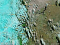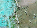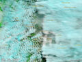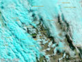 Hoy el viento se hizo presente y levantó ceniza en muchos lugares. En la ciudad todavía estaba húmedo por la lluvia, pero al otro lado del lago (y desde ahí por casi todo Neuquén) se veía cómo se levantaba polvo y la nube se iba haciendo cada vez más densa hacia el Este. En las imágenes satelitales se desdibuja el paisaje en los alrededores de Zapala.